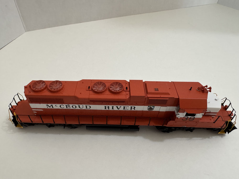 ![]() EMD's designed and intended their SD38 and SD38-2 locomotives for niche markets where tractive effort outweighed horsepower requirements, and as such sales of both models remained low, amounting to only 108 SD38s built between 1969-1971 and 90 SD38-2s built between 1972-1979, not counting some export variations. The relatively small number of prototypes has limited the availability of both locomotives in the model railroad market; Rail Power Products produced a SD38 shell that later got picked up and added to Athearn's line, and over the last decade and a half or so Athearn has released three runs of McCloud River SD38's and has a fourth now apparently scheduled for release sometime in 2026. The SD38-2 has been even more scarce, limited in plastic to a single offering from Kato released around 2005, but Kato never released it painted as McCloud River #39. Hope for a McCloud River #39 model raised in June 2016 when Intermountain Railway Company announced plans to make a SD38-2 available in HO scale. Their initial group of road names did not include the MR #39, but shortly afterwards Daylight Trains, a retail shop that only existed on Facebook, made a splash when they released a flyer indicating they had made special arrangements to have 100 of the forthcoming Intermountain models painted as the McCloud River #39. Daylight worked with a couple established hobby shops to help with the marketing and distribution. Unfortunately, Daylight ceased to exist as a company by 2018, and nine and a half years (as of December 2025) after announcing their SD38-2 Intermountain has yet to actually make any models, and doesn't appear to be any closer to doing so than they were in 2016. In November 2021 Scale Trains, a relatively young company in the model railroad industry, announced it would make SD38-2 models as part of their "Rivet Counter" line. Their first run of SD38-2s released in 2022 did not include the McCloud unit, but the company indicated plans to offer one, and that became a reality when they released plans for their second run in mid-2025. The McCloud River #39 arrived in the United States in late November. I placed a pre-order for one of the new models when Scale Trains made the announcement, and it arrived on 2 December. Scale Trains has developed a reputation of producing excellent running well detailed models, and their McCloud River #39 is no exception. The model runs exceptionally well out of the box. I have never taken the DCC plunge, and as such I have a standard DC model that is equipped with directional lighting, including number boards and running lights above the trucks. A good part of the product manual included with the model describes the various sound and light effects programming options available on the Sound and DCC equipped models. The paint matches closely to what Athearn used on their last run of McCloud River SD38s While these models are impressive, I did note several small detail errors. First, the real #39 had a speed recorder cable mounted to the rear axle of the front truck on the fireman's side of the locomotive, on the model it is mounted to the front axle. Shortly after arriving in McCloud the railroad installed rotary beacons on top of the cab roof and at the end of the long hood, while the one of the rear of the locomotive is properly located the one on the cab roof is too far forward, it should have been located back towards the center of the cab. Scale Trains also got the location of the radio antenna slightly off, on the model it is located on the centerline of the cab while on the prototype it is offset to the right side of the cab. On my straight DC model the beacon lights are constantly lit, and while that's a price I pay for being behind the times I would have preferred they be dark if making them flashing on a non-DCC equipped model was not an option. These are all relatively small errors and do not materially detract from the overall model. Overall these are fantastic models, and Scale Trains is to be thanked and highly commended for finally bringing this model to market. It fills a large hole in the McCloud model market. I hope they offer the model as the McCloud Railway #39 someday, along with maybe all-weather cab windows. Thanks you, Scale Trains! Now, on to some photos of the newly released Scale Trains #39. ![]() We'll start with a builder's photo of the "real" #39. ![]() Scale Trains #39 from roughly the same angle. The #39 left EMD with the steps, snowplow, and handrails painted black, the railroad added the yellow stripes on the plow, bottom steps, and handrails shortly after it arrived on the road. ![]() Right side view of the model. ![]() Left side view of the model. ![]() A three-quarters view of the right side of the locomotive. ![]() Looking down at the roof of the model. ![]() Another view of the right side of the model. ![]()