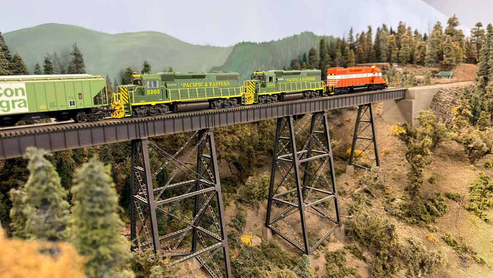 Long-time friend of this site Carlos Furcal also got one of the new Scale Trains models, shortly after getting his he ran it on the Rogue Valley Model Railroad Club's layout in Medford, Oregon. He sent