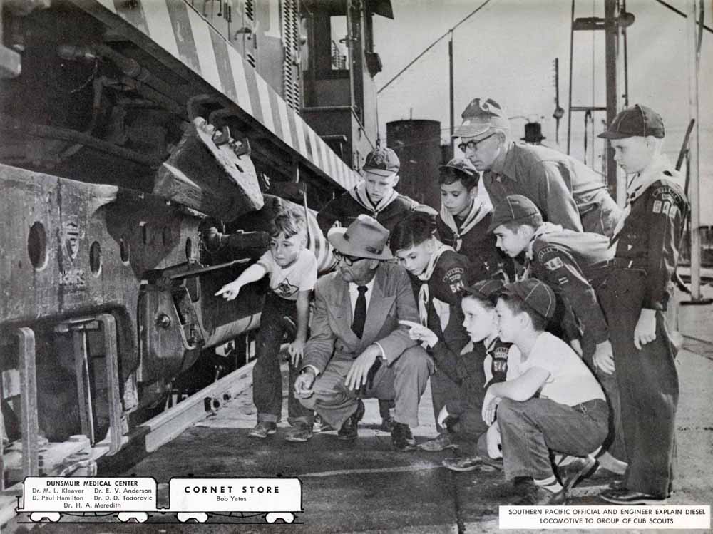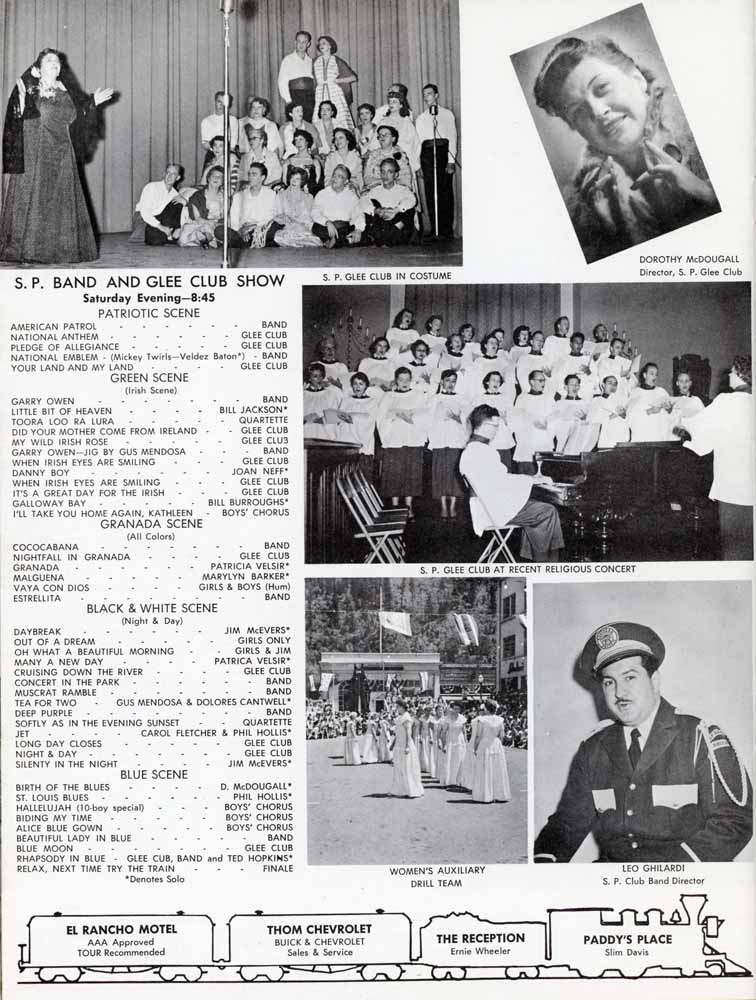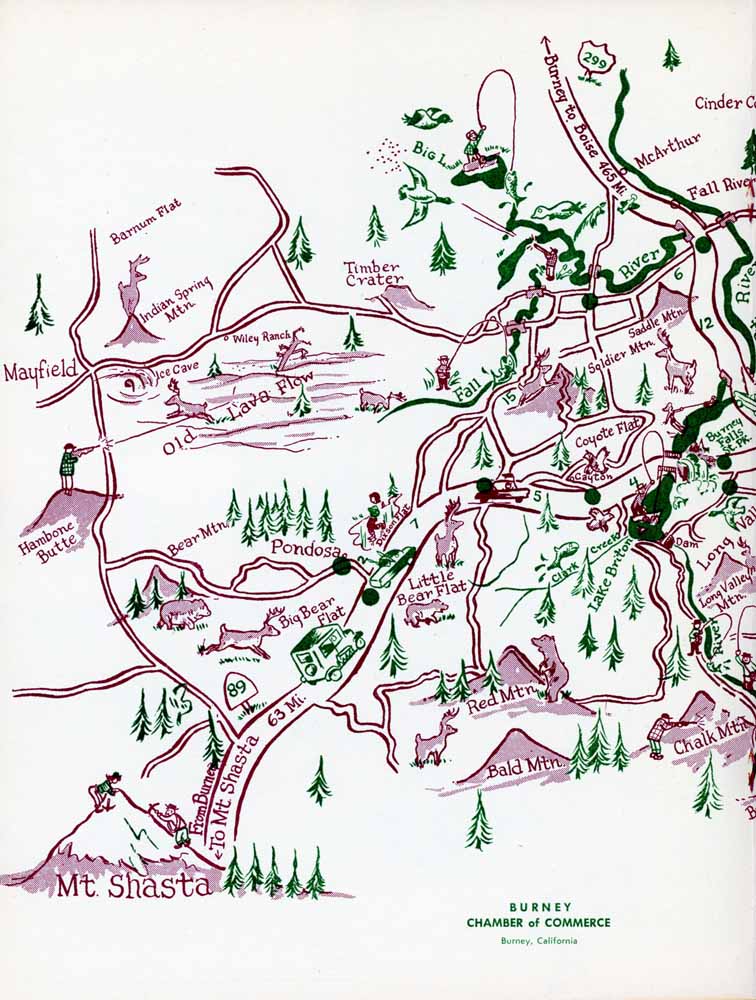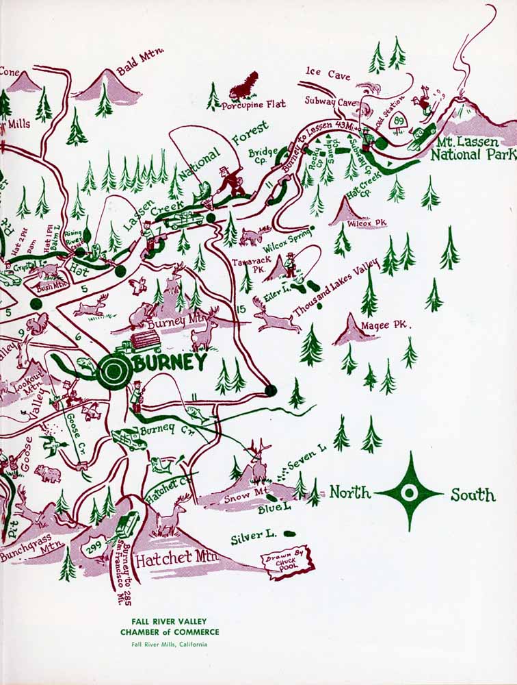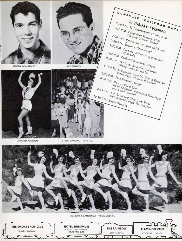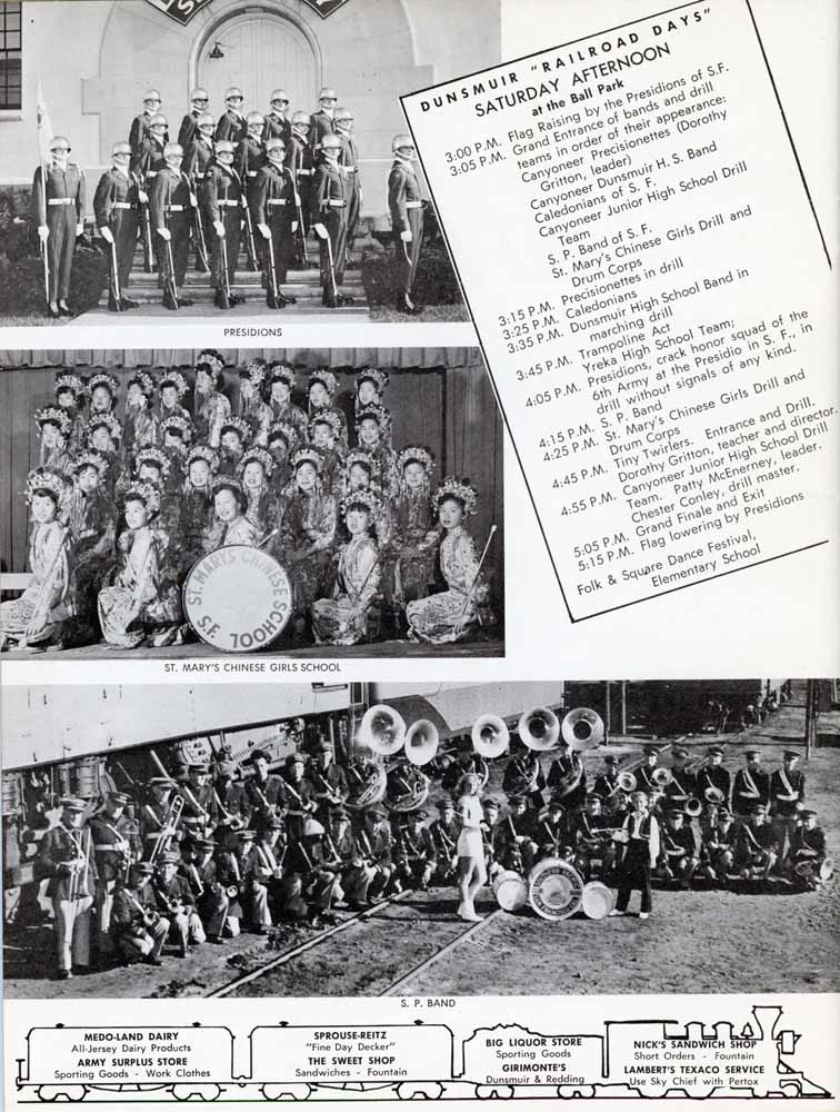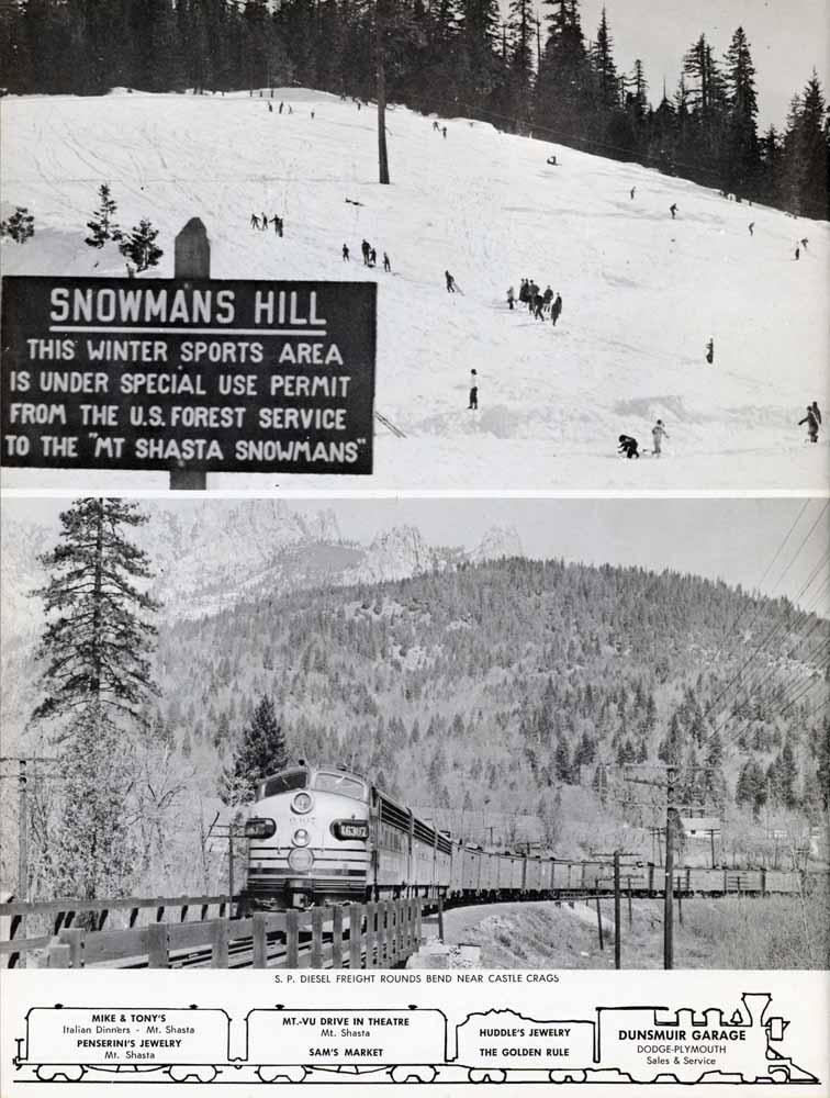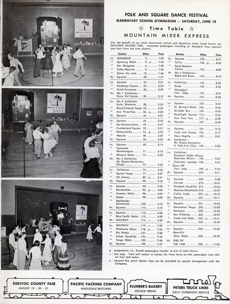 In 1946 Dunsmuir held the first of what has become its annual Railroad Days community celebration and event. The tenth such event scheduled for the weekend of 16-18 June 1955 fell two weeks before celebrations marking the completion of the McCloud River Railroad's new Burney extension, and in honor of that event the town of Burney renamed its annual Burney Basin Days held around the July 4th holiday to the "Golden Spike Jubilee". The organizers of the two events combined their efforts to produce a souvenir program covering both events. The program is reproduced here in its entirety, in the order the pages appear in the original. Some of the pages have been rotated to a Landscape format for viewing ease. One note, the first half of the program covers the Burney Basin Days/Golden Spike Jubilee, while the Dunsmuir Railroad Days are in the back half, but the Dunsmuir events start sequentially at the rear cover and work forward from there, as a result the program in its raw form appears in reverse order of the actual events below. |