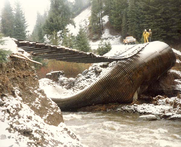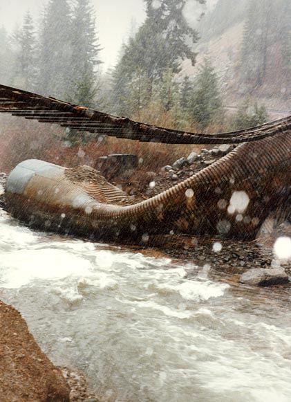 Two views of the washed out Bear Creek fill near M.P. B-28. ![]() |
