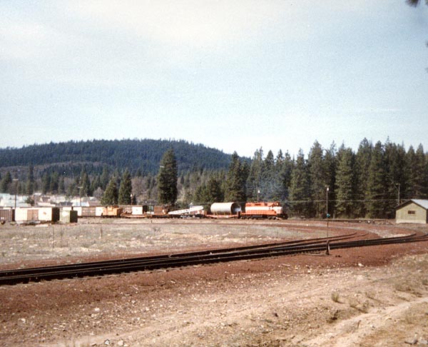 Flat #1000 carrying the new culvert for Bear Creek departing McCloud as part of a work train consisting of locomotive #39, two m-o-w flats, crane #70, and a caboose. |