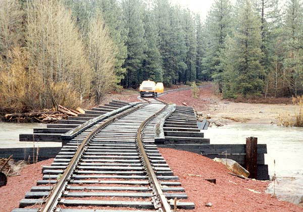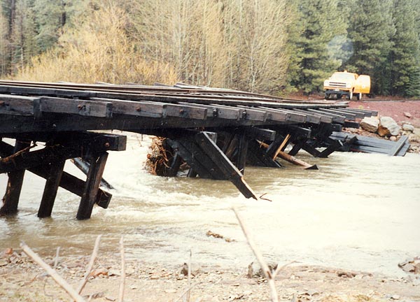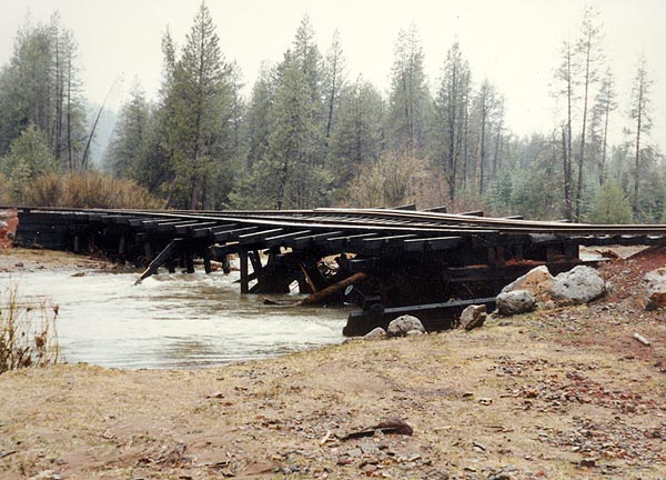 Three views of the washed out Bear Creek Bridge on the Pondosa branch. ![]() |