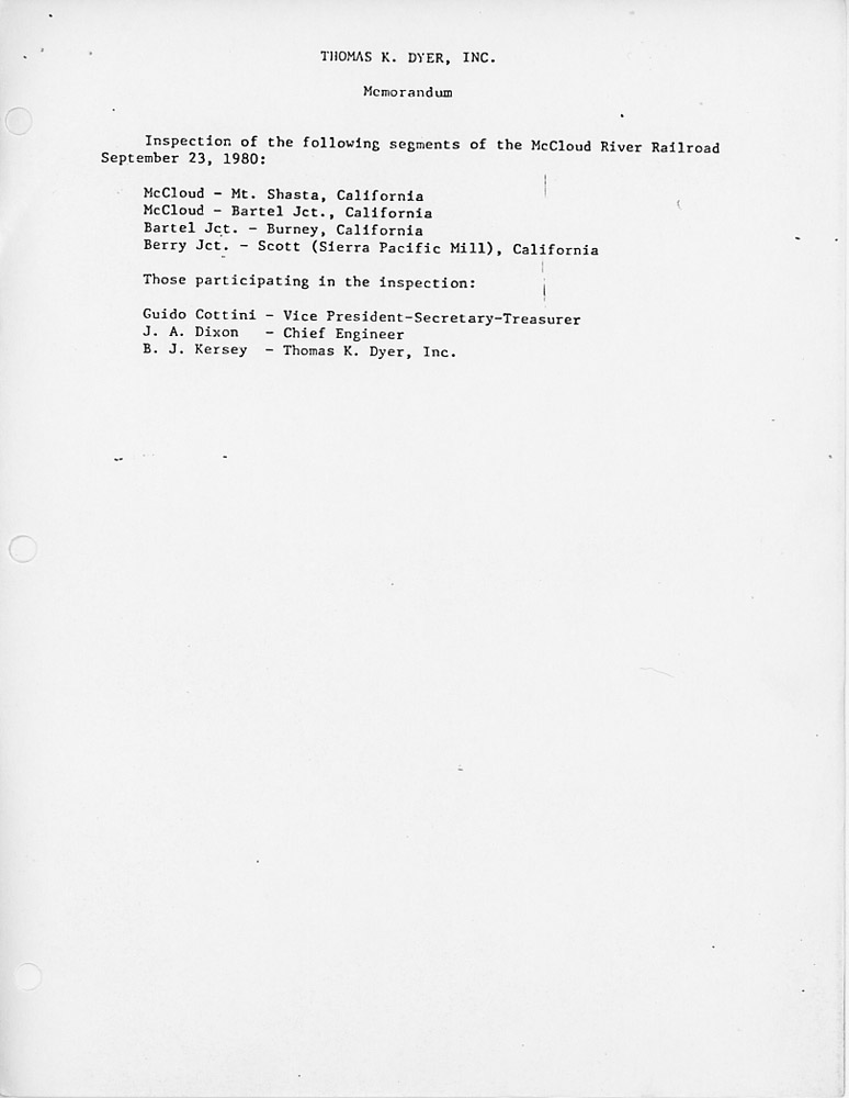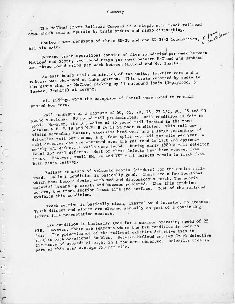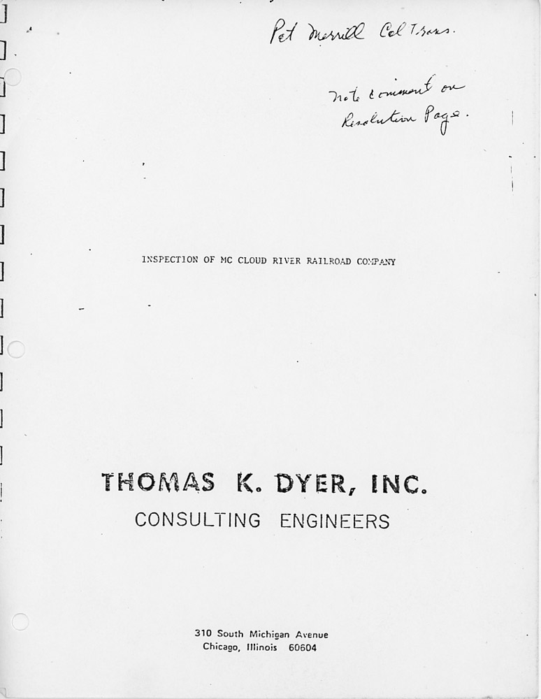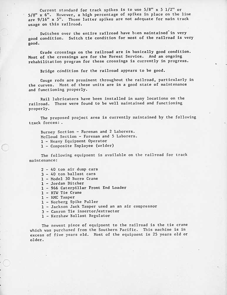 Below is the report Dyer Engineering prepared documenting their observations, assessments, and recommendations of the work to be done on the McCloud River Railroad as part of the 1981 track rehabilitation grant. Simply close this window to return to the main topic page. |