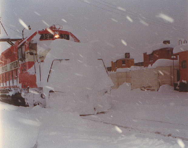 #38 leading a train into Cayton Valley, taken from a trailing unit. Photo by and courtesy of George Landrock. |