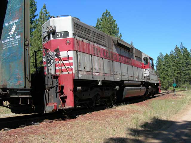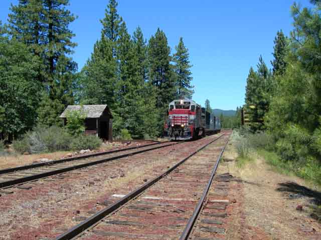 The train departs back up the Sierra branch as soon as the loads are picked up. The front coupler of the #37 makes for an interesting contrast against the roadbed. |