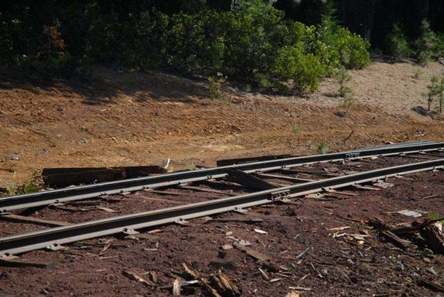 While waiting for the train to arrive at crossing 408 Drew took some photos of the track conditions here. This is the site of a derailment in the early months of 2005. Drew Jacksich photo, used with permission. |