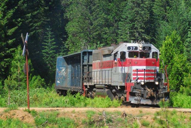 The #37 is backing down the Pondosa branch remnant towards the remaining boxcars stored at the end of track. Drew Jacksich photo, used with permission. |