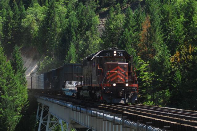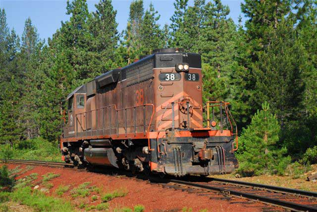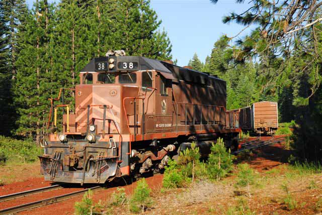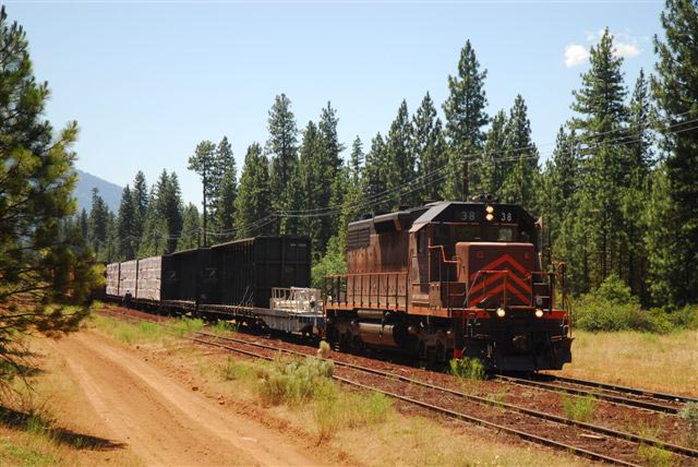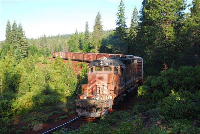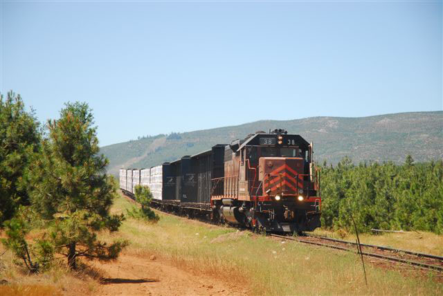 Does it all come down to this? #38 leading the five cars that Sierra Pacific did load plus the two they did not through the Fountain Fire area a little over two miles away from the mill. Drew Jacksich photo, used with permission. |
