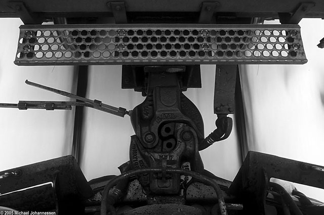 A close up shot of the coupling between the #37 and the first boxcar. |