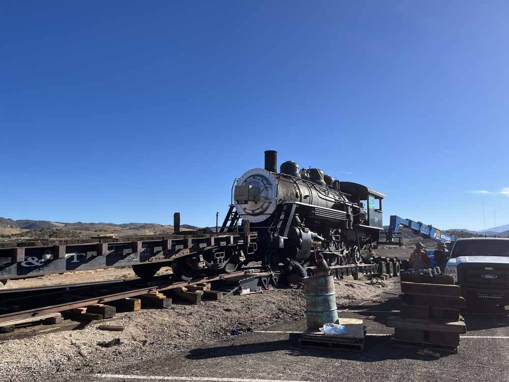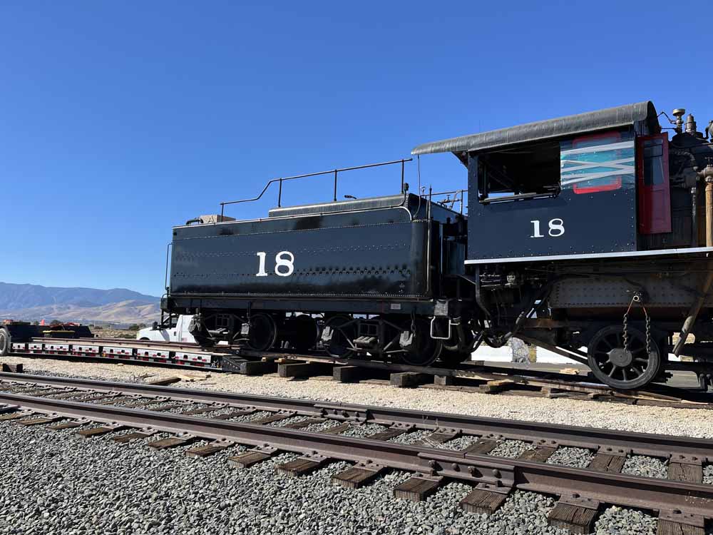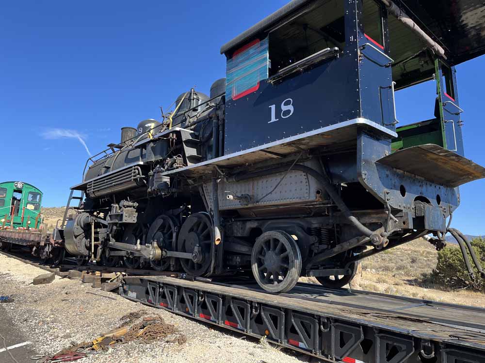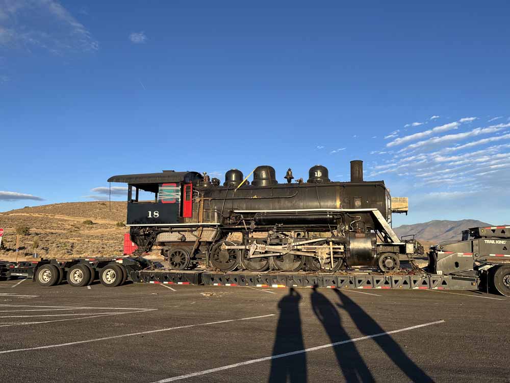 As noted on the News section of this website, the former McCloud River #18 got trucked from its current home on the Virginia & Truckee Railroad in western Nevada to Butte, Montana, in the fall of 2024 for use in filming "1923", a spinoff of the highly successful "Yellowstone" franchise. Matt Simons was on hand to help load the #18 onto trucks at the Eastgate depot. All photos are by Matt unless noted. |