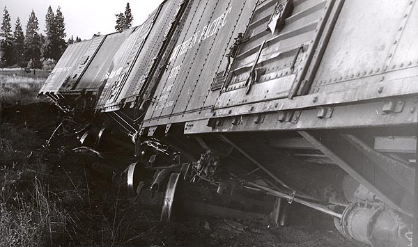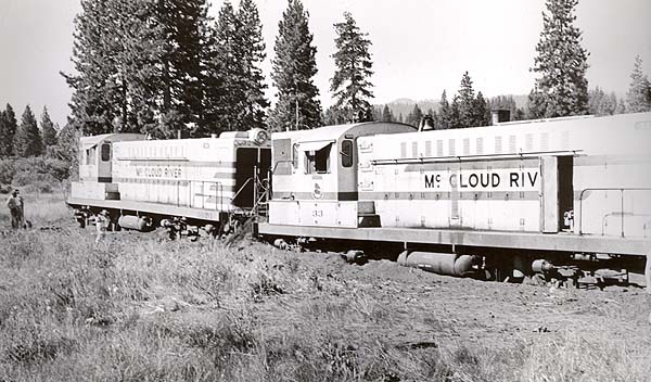 Several views of a wreck off of Southern Avenue in McCloud around 1957. The McCloud yard is built on a steep grade, and from time to time cars or locomotives ran away down the hill, ending up south of Highway 89. These pictures are of one such wreck. ![]() |