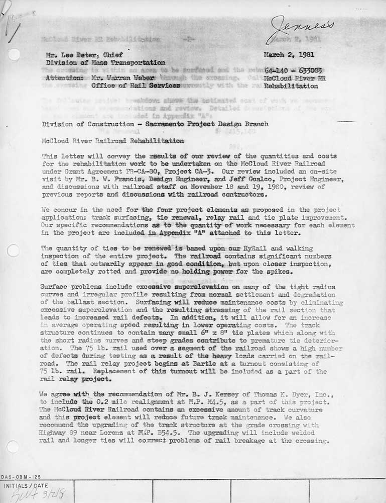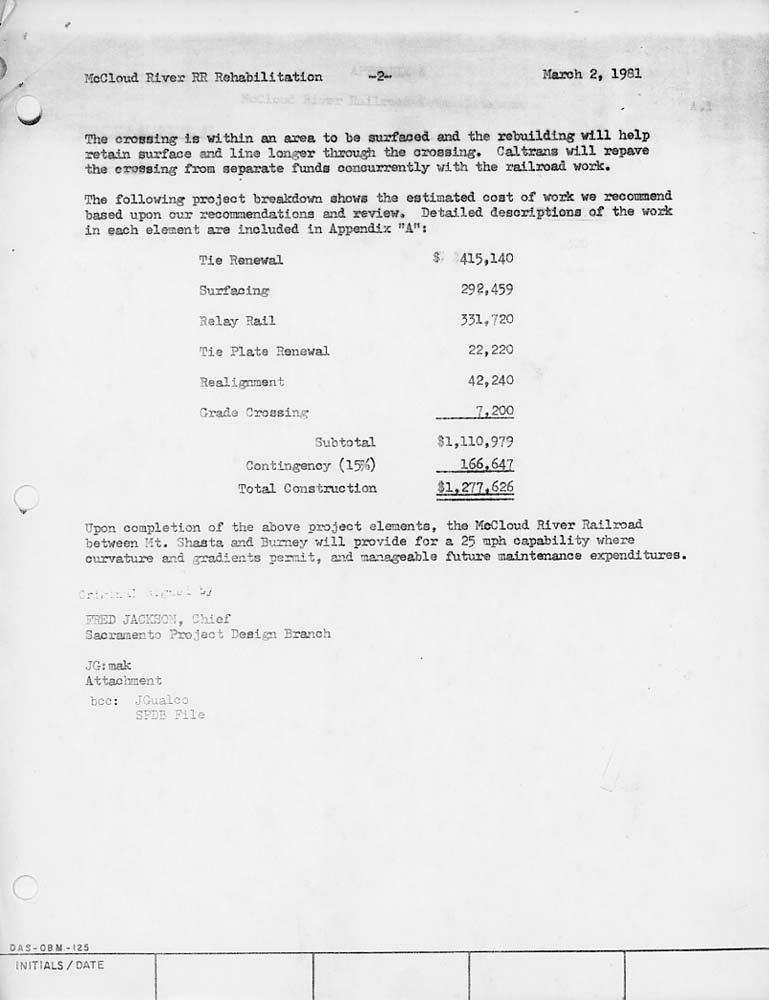 1981-1982 FRA Track Rehabilitation Grant Project Status Letter- March 1981 |