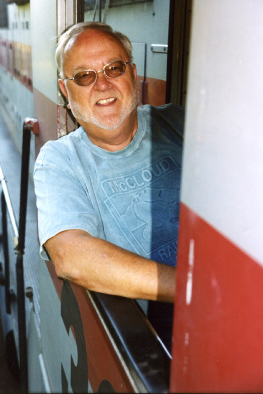 As the 2000's dawned, Malen shined as he became to a new generation of railfans what previous McCloud icons like Ray Piltz and Jack Jordan had been to the enthusiasts of their time. Mondays through Fridays would find Malen climbing on board the diesels to keep the freight moving over the line, while on the weekends he would put on the striped overalls and play the roll. While Malen didn't exactly always see his world through railfan eyes, he became the consumate showman, learning what "the fans" wanted and then doing all in his power to deliver the show they paid to come see. When not running trains, Malen lived an otherwise rich and full life of such things as tending to his garden and lawn, wood working, cutting firewood, sharing time with JoAnn on their wide porch, traveling to visit his daughters and their families, and working on an endless stream of vehicles, mostly older Toyota pickups. |