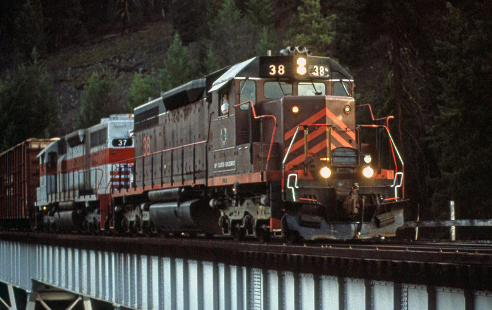 In September 1985 he encountered another train powered by the #37 and #39 at Lake Britton.
