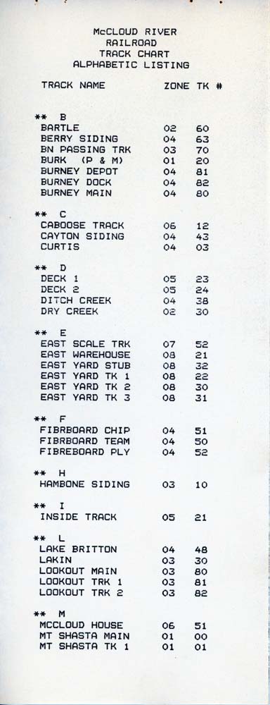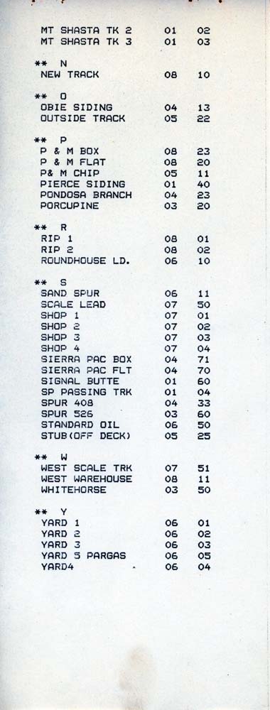 The following guide to track numbers dates from sometime in the early 1980s. This is I think the first reference I have seen to the Runaround/Ash Creek Junction as the "North Yard". |
