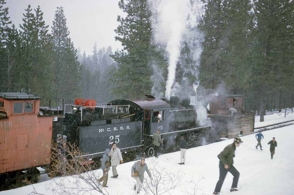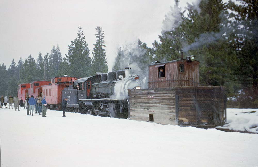 The Pacific Locomotive Association winter trip became one of the staples of McCloud River steam excursions in the last half of the 1960s and first half of the 1970s. The PLA varied the routing and consist from one year to the next so that photographers could get new pictures. The PLA winter trip operated every year from 1964 until 1975 save for three. In 1969 the club tried running the trip with the Baldwin diesels that were scheduled for retirement that spring, but low ticket sales forced the trip to be cancelled. Then, in 1970 the railroad planned for the #25 to be withdrawn from service after the end of the year, and though the change of heart gave the excursion program a new lease on life it came too late for a 1971 winter trip, and the locomotive was in the shop getting the boiler work during that the time of year the trip would have run anyway. Finally, no trip ran in 1974 due to a variety of mostly economic factors. This page contains a random selection of photos from some of the winter trips held between 1965 and 1970. |