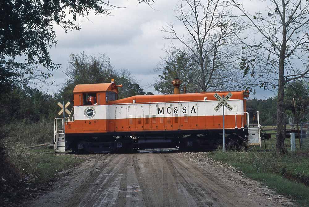 The GE centercab served the MC&SA until late 1990, when Champion International sent it to switch their big paper mill in Lufkin, Texas. The railroad replaced it with an EMD SW1200 switcher purchased from