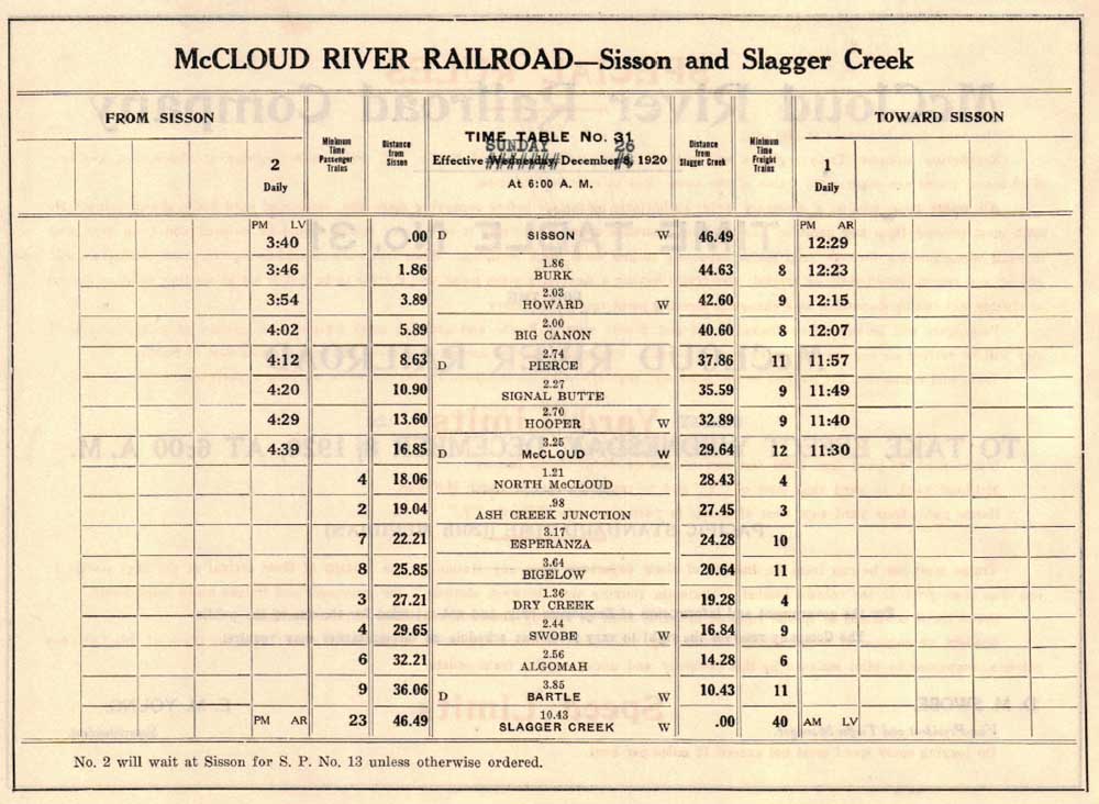 McCloud River Railroad Timetables